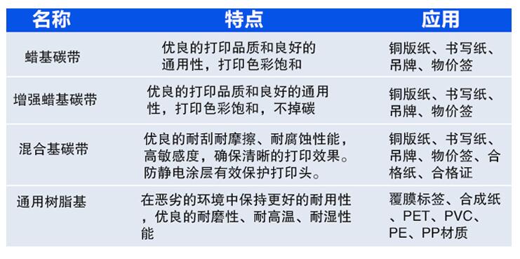 混合基碳帶,耐刮擦,價(jià)格稍貴,可以打印銅版紙,合成紙,pet,pvc等;