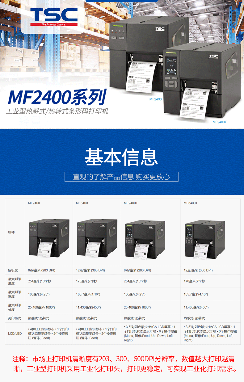 TSC有30多個(gè)系列,近百個(gè)機(jī)型的專業(yè)條形碼打印產(chǎn)品,種類涉及桌面型、工業(yè)型、便攜型、列印模組以及彩色打印,是目前所有品牌中產(chǎn)品較為齊全的制造廠商,可滿足各種行業(yè)的使用需求。